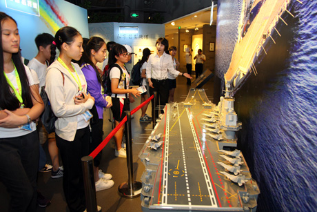 三峡大坝、辽宁舰等模型吸引了同学们的眼球,大家纷纷驻足观看、拍照留念。面对书画展厅里的作品,院士们的艺术作品让同学们赞叹不已,书法之美让大家不禁感叹祖国文化的博大精深。