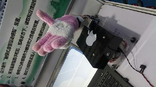 张梓轩说,机械手的主题是ABS工程塑料,手指之间的关节他采取了舵机拉线的方式来实现,但在手腕表面贴了硅胶的皮肤,摸起来很有真实的人体皮肤接触感觉,而且他用电热丝加热整个手掌,可以把用arduino控制的温度传感器把温度精确控制在37.5度,这样就可以模拟出真实的人体感觉了。
