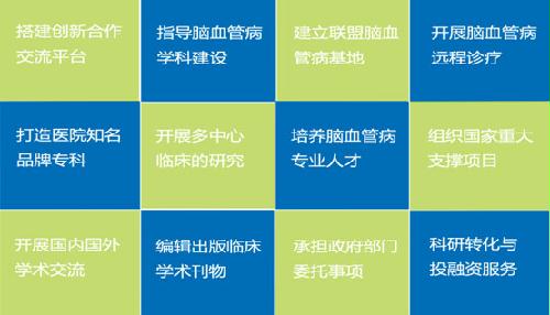以创新驱动为导向,以脑血管病诊疗技术(尤其脑血管病的预防和早期诊断等关键共性技术)的提升为目标,显著提高脑血管病诊断和防治能力。本着“携手共赢、协同发展”的目标,联盟将探索和建立适合我国脑血管病诊疗体系的创新合作服务模式,提升脑血管病的医疗服务及产业技术链在国际上的核心竞争力,达到组学创新研发、资源互补与学科共同发展之目的,服务于广大的心脑血管病患者。