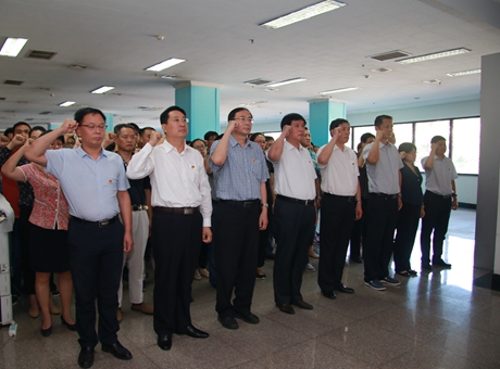 为进一步深入学习贯彻党的十八届六中全会精神和习近平总书记系列重要讲话精神,把全面从严治党决策部署变为实际行动,扎实推进“两学一做”学习教育常态化制度化,9月12日,市科协在机关办公楼二层大厅开展了以“我要永葆共产党人的浩然正气”为主题的党员公开承诺活动。市科协领导班子成员,机关各部门、各事业单位在职党员以及社会组织党总支党员共180余人参加。