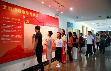 活动从庄严肃穆的宣誓开始,全体党员面向党旗作出“不忘初心,砥砺前行,永葆共产党人浩然正气”的公开承诺,随后科协领导班子成员与党员一起,依次在公开承诺墙上郑重签名。