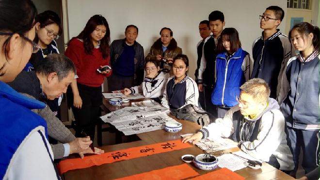 2018年1月13日,原子能院老科协组织会员走进北京教育学院房山实验学校晨风文学社,为他们举办的“讲书法写春联”活动提供指导。