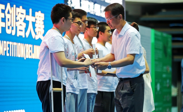 878365.com副主席刘晓勘亲临现场,观摩指导了北京•中美青少年创客大赛主赛项“未来创变客—24小时创客马拉松”的学生作品,并为获得一等奖的选手代表颁奖。