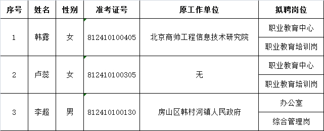 按照《2018年北京市科学技术进修学院公开招聘工作人员公告》要求,通过笔试、面试、体检和考察等程序,经集体研究拟聘用韩露等3人。现予以公示,具体情况如下:
